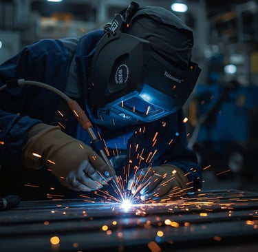 Snapshots of our craft: from welding sparks to finished steelwork.